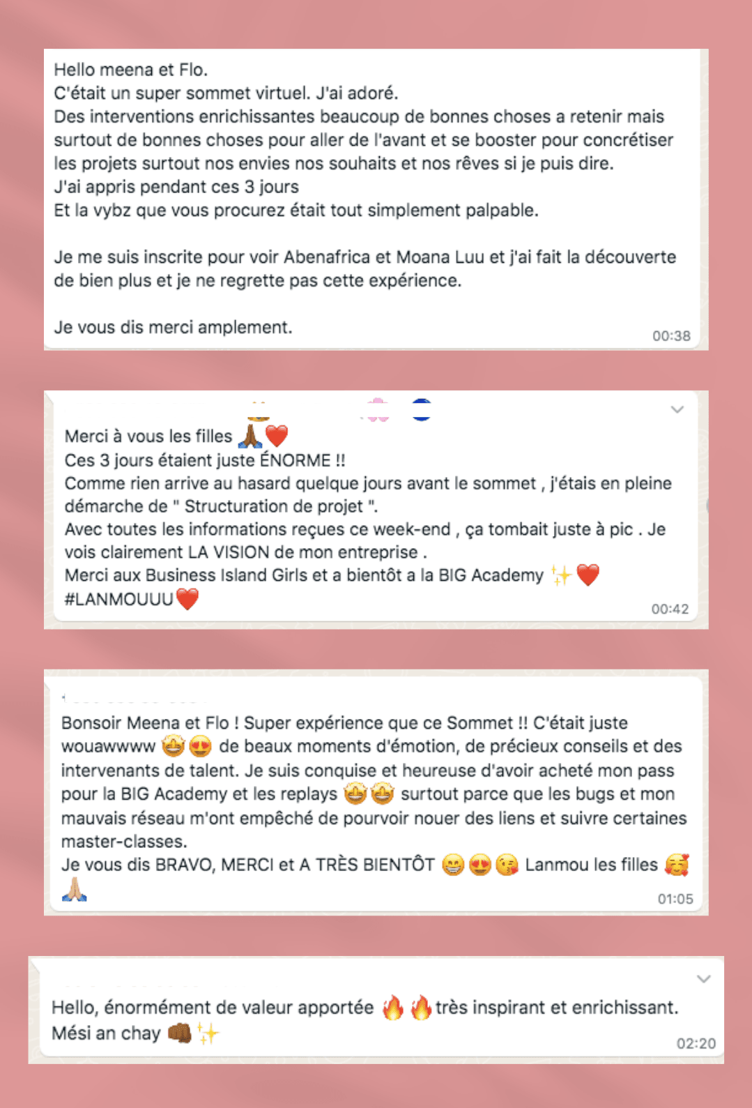 Si tu penses manquer certaines sessions OU si tu ne veux tout simplement pas perdre une seule miette de tous les conseils qui te seront partagées, c'est le meilleur investissement !